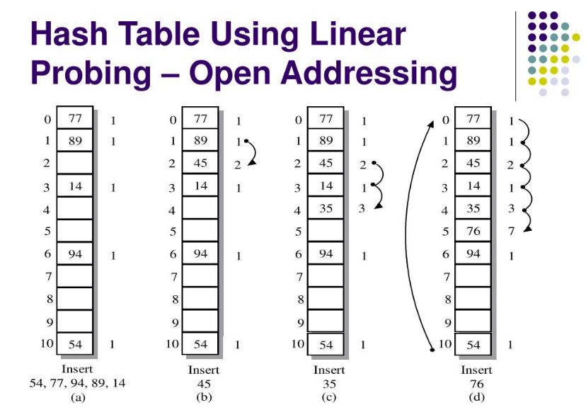 이러한 방식은 주소가 겹쳐서 충돌이 발생하는 문제를 다른 빈 공간을 찾아 할당하는 방식으로 해결하기 때문에 메모리를 효율적으로 사용할 수 있으며 추가적인 연결리스트를 사용하지 않아도 된다는 장점이 있다.